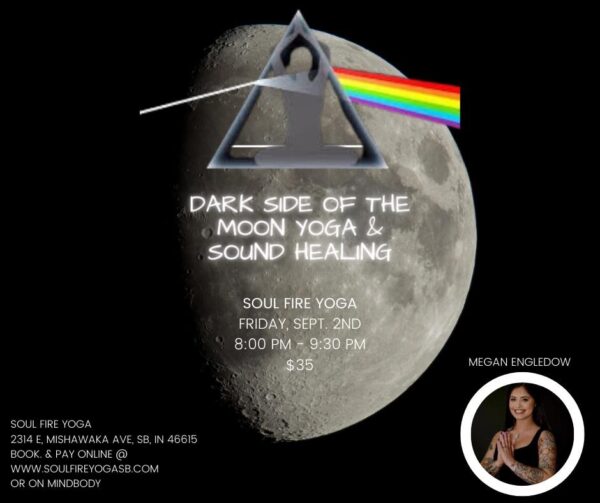 Meghan Engledow (RYT 200/certified sound healer/owner of Wrapped In Light, LLC) created The Darkside Of The Moon Yoga & Sound Bath Event almost 5 years ago to be an experience to remember. Synchronized breath and movement to the tune of Pink Floyd’s Album. This event is a piece from Meghan’s heart & soul. This full length album has helped her come out of the darkness and into the light countless times. She’d love to share this magic with you. After a small intermission she will guide you to dive deep into the subconscious with a mini sound bath. The body/mind relax and are able to heal on a cellular level. 7 crystal singing bowls tuned to each major chakra will be harmoniously played. Bring your breath and on open mind. Together we will step out of the darkness and into the light.