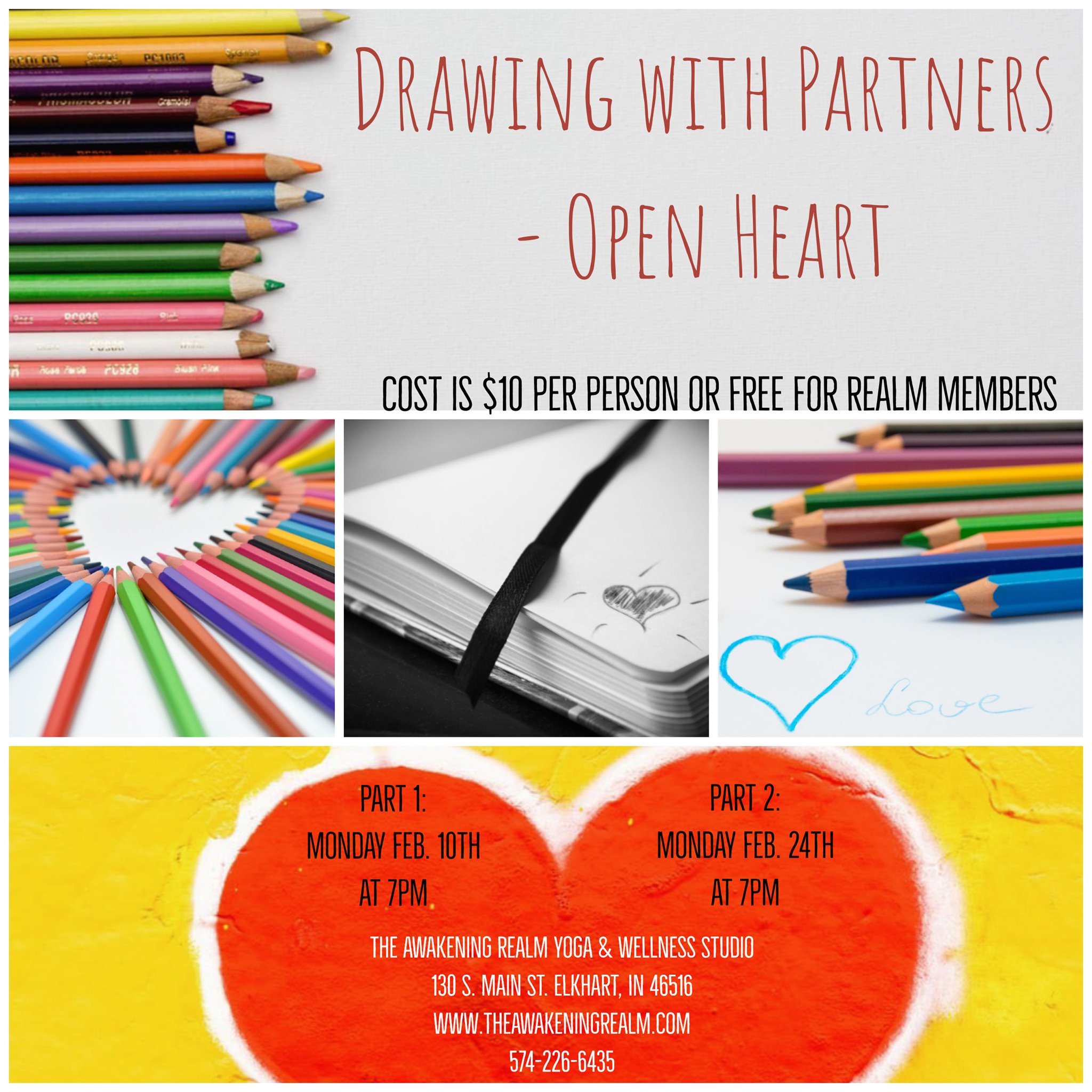 Broaden and deepen your perspective and compassion for your drawing partner. Cultivate healthy appropriate intimacy. This is for any type of relationship, friends, spouses, or come alone and be surprised. Partners will agree on a subject matter, or have the option to draw one out of a hat.