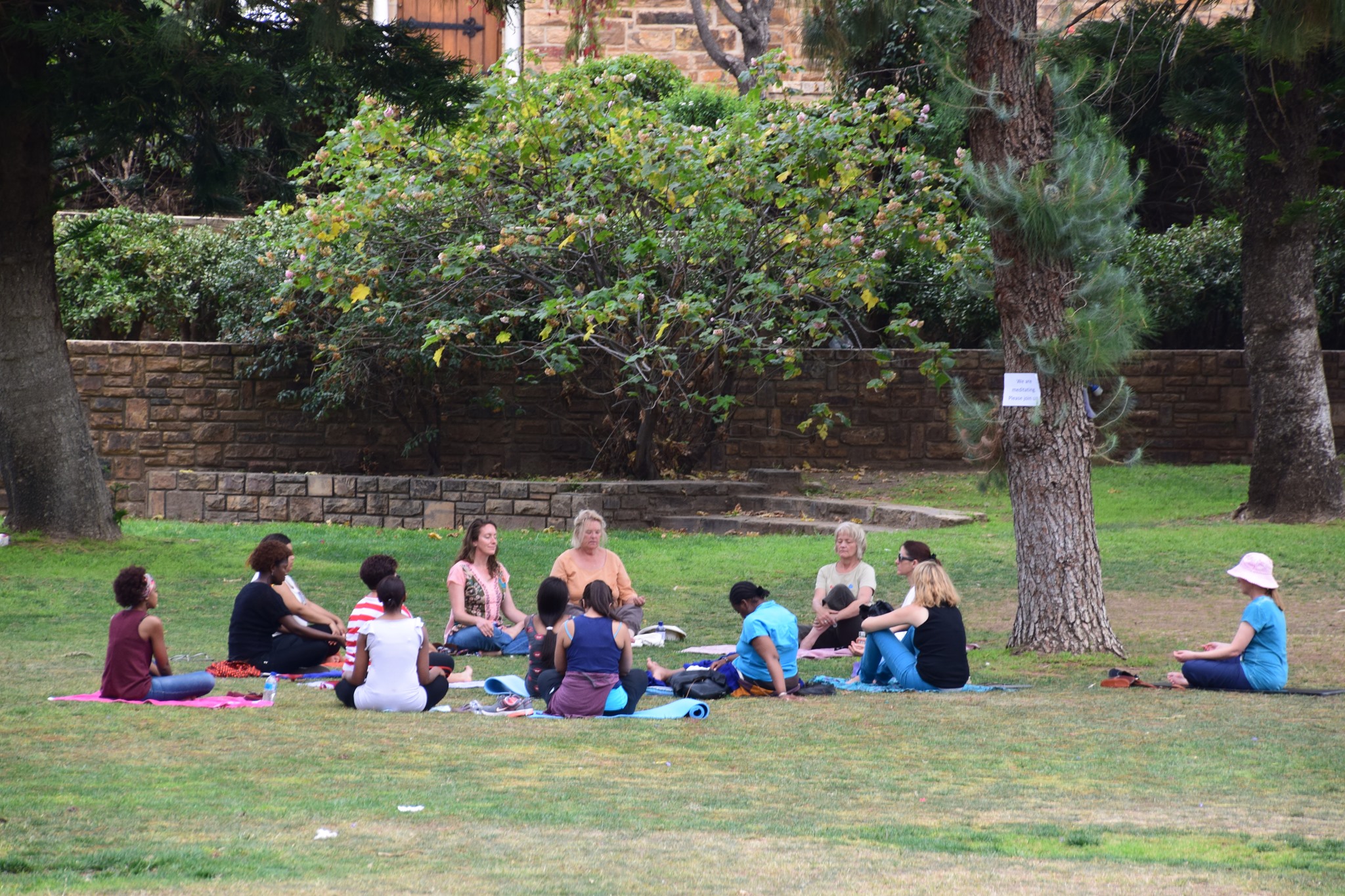 Come to the parking lot by the boat ramp/kayak launch. As you face the boat ramp, we will be on your left, behind the picnic tables. (The opposite side of the parking lot from the playground and community center.)