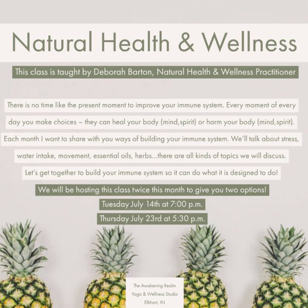 Each month I want to share with you ways of building your immune system. We’ll talk about stress, water intake, movement, essential oils, herbs…there are all kinds of topics we will discuss.