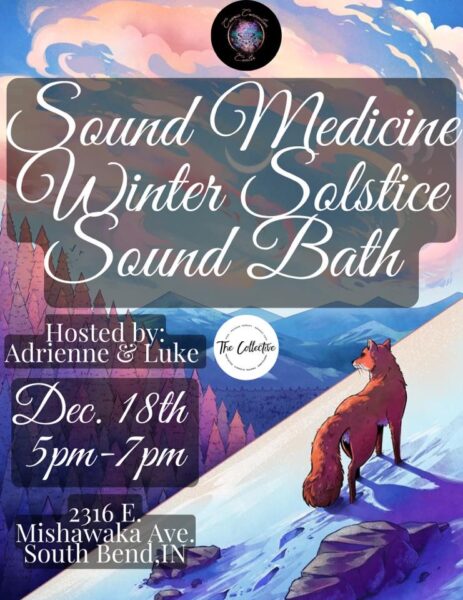 Come wash your soul in a sea of sound! Join us in welcoming Adrienne & Luke from The Collective for an epic sound bath here at Cosmic Connection Center for a Winter Solstice celebration!